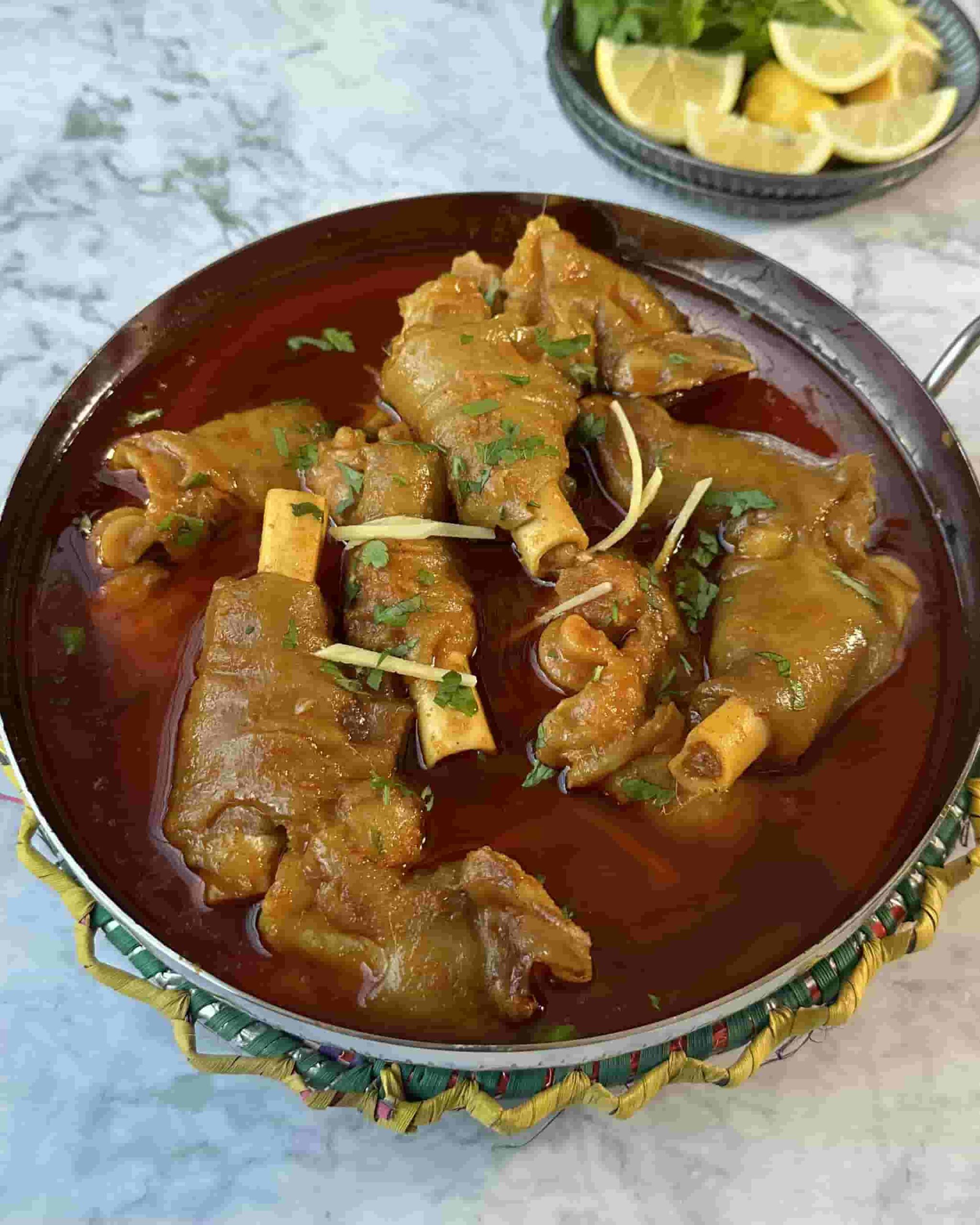 Slow-cooked mutton paya simmered with aromatic spices, delivering a rich, hearty, and soul-warming broth in every sip.