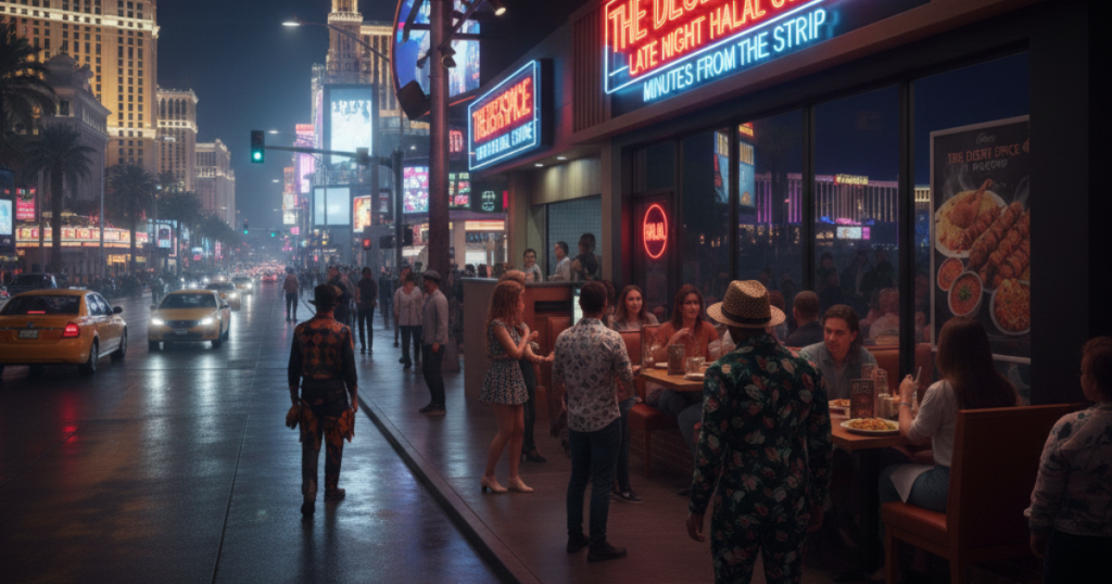and tourists. Visitors staying near the Strip often choose us for a reliable halal dining experience